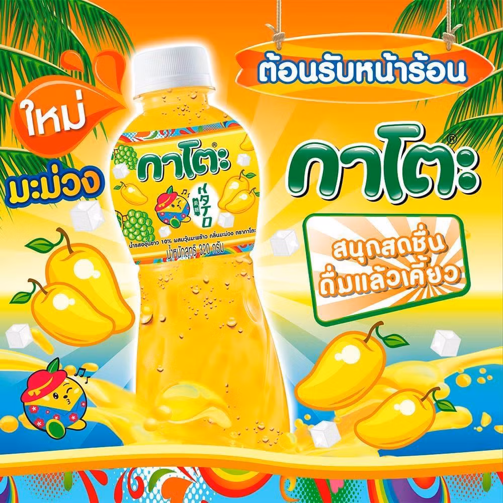 Ingredienser: Vatten , mangopure', nata de coco ( kokosgele'), fruktos, surhetsreglerande medel (E330, E331), konserveringsmedel E211, sötningsmedel E950, E951, färgämne E102 E110, naturidentisk smak.