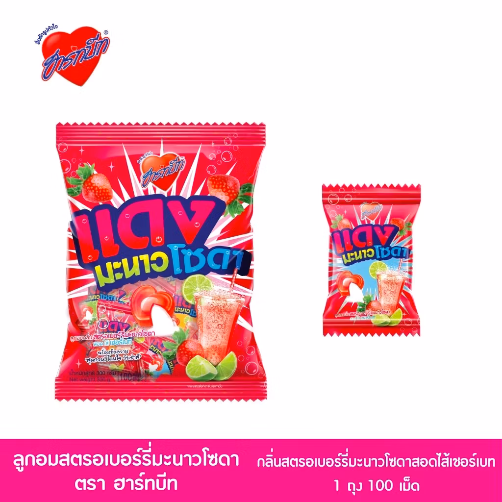 Socker 50%, glukossirap 48,85%, konserveringsmedel (E296), färgämne (E124). Kan ha negativ effekt på barns beteende och koncentration.