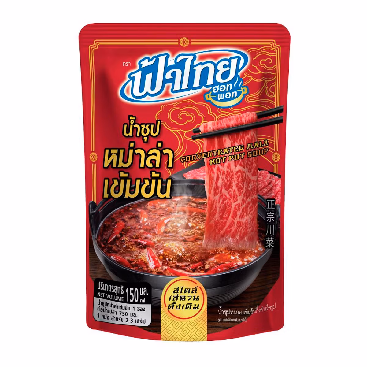 Ingredienser: Sojabönolja 50%, vatten 19.37%, drird chili 7%, kryddor 5.1% ( vitlökspulver, ingefära, fänkålsfrö, stjärnanispulver, kardemummapulver, kanelpulver), jodiserat salt 5%, sojasås 5% ( sojaböna, vete, salt, vatten), sichuanpeppar 3%, socker 1.5%, smakförstärkare 3.5% ( mononatriumglutamat, dinatrium 5- ribonukleotider), artificiell arom 0.25%, naturlig färg ( E160c(i)) 0.2%, konserveringsmedel ( E202) 0.05%, antioxidantmedel ( E223, E321) 0.03%, innehåller sojaböna, vete.