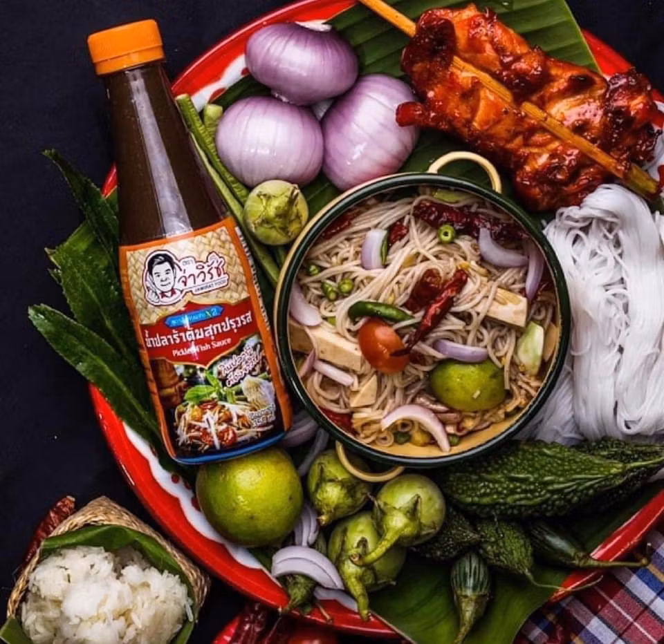 Fermenterad fisk (trefläckig gouramifisk, salt, rostat ris), socker, smakförstärkare (mononatriumglutamat: E621, dinatrium 5'-ribonukleotider: E635), räkpasta (räkor (kräftdjur), salt0, natriumkarboximetylcellulosa (E466) ), xantangummi (E415), modifierad tapiokastärkelse (E1442), natriumbensoat (E211).