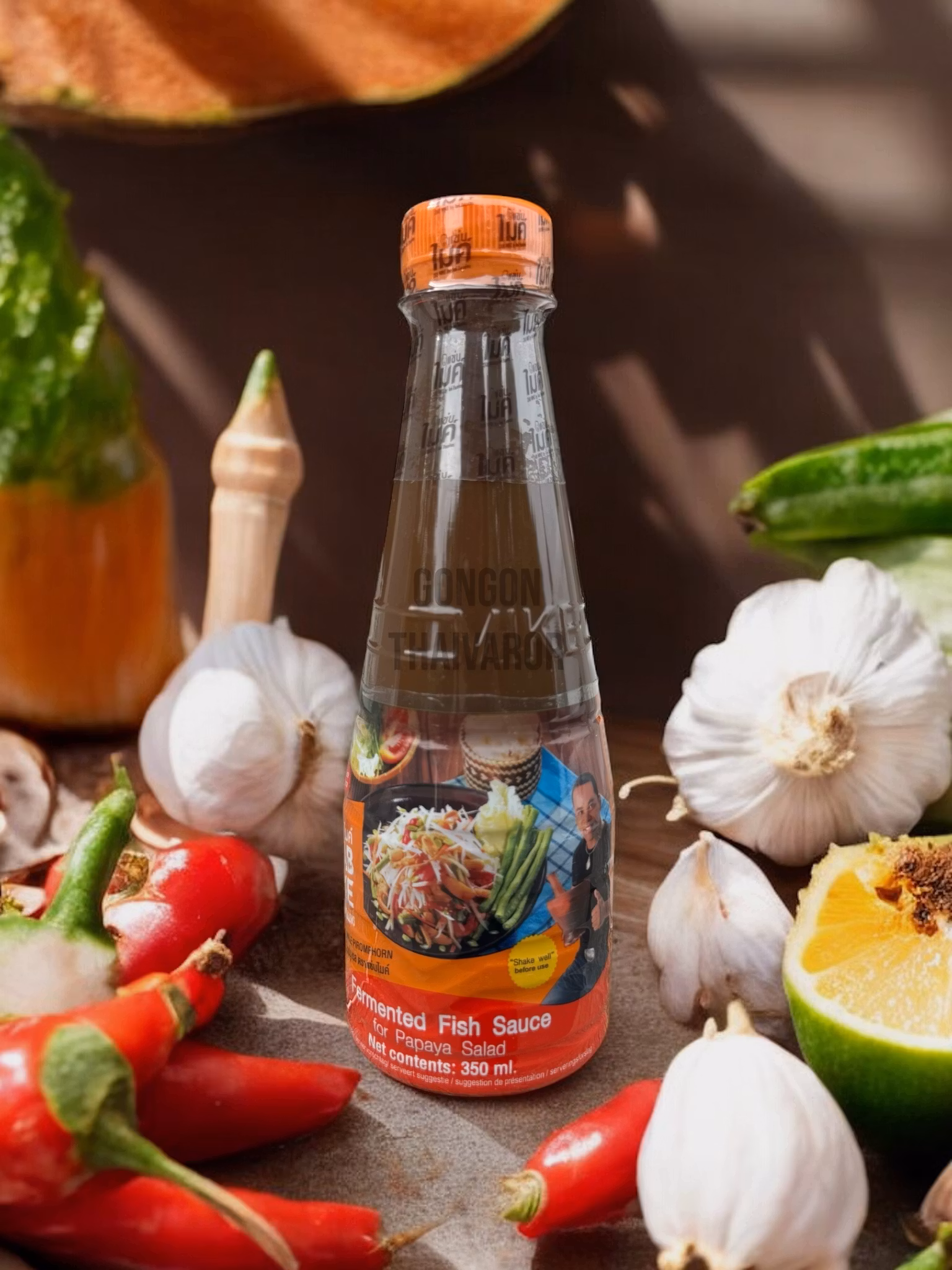 Ingredienser: Jäst FISKSÅS (KARP extrakt, TILAPIA extrakt, rostad ris, vatten, salt), socker, picklad vitlöksjuice, smakförstärkare E621, färgämne E150a, stabiliseringsmedel E415.