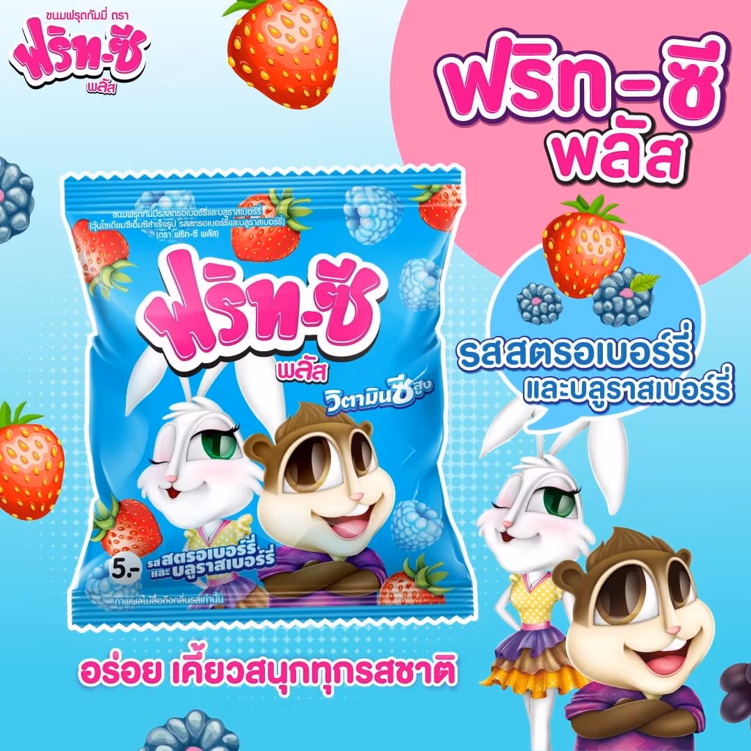 Frit-C godis med jordgubb / blåhallon smak 24g