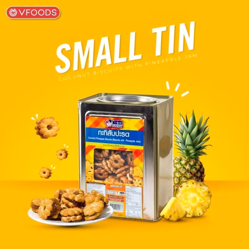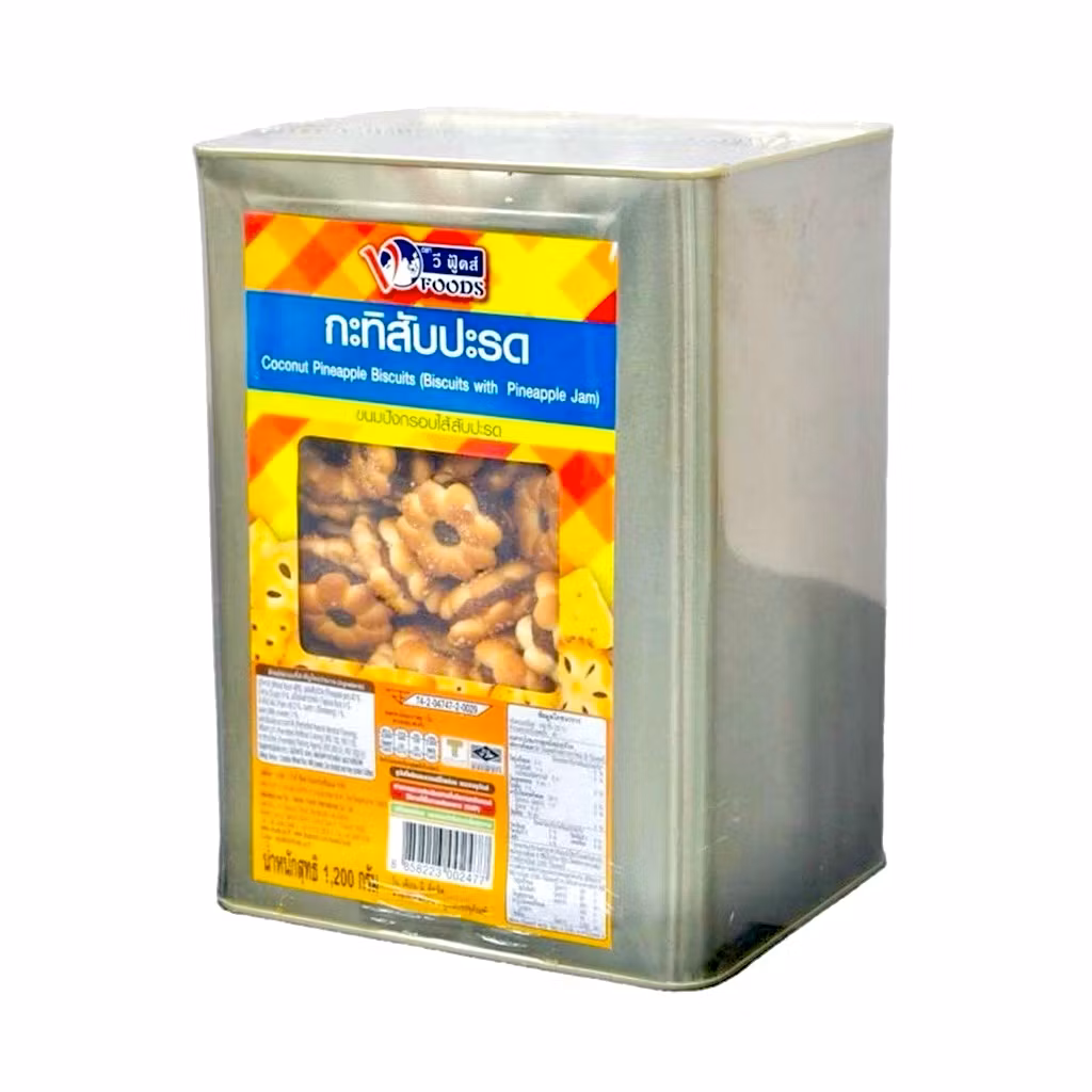Ingredienser: VETEMJÖL, ananassylt (vatten, ananas, socker), palmolja, socker, jodsalt, arom, färgämne (E102, E110).