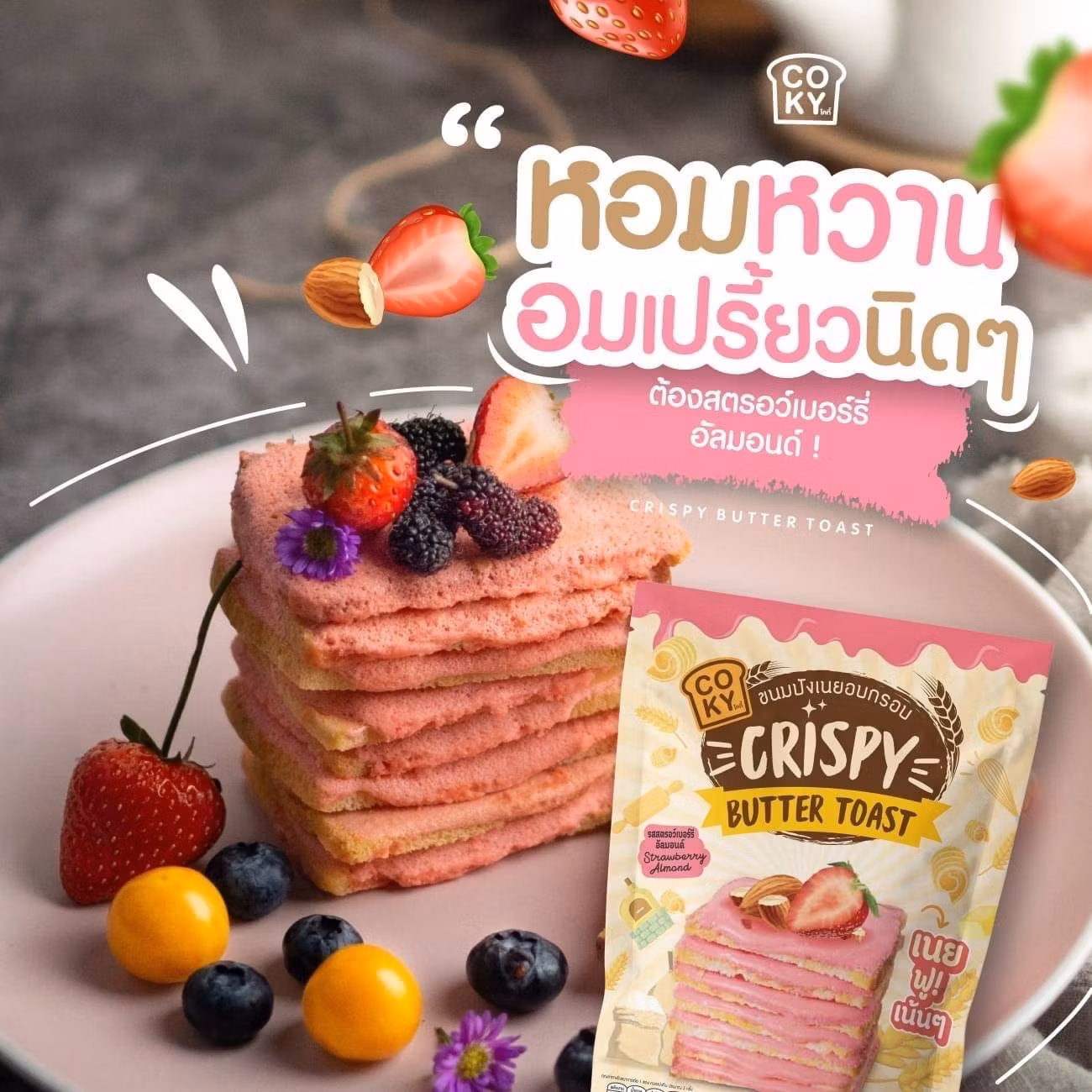 Coky - Crispy Toast Strawbery Almond 80 g