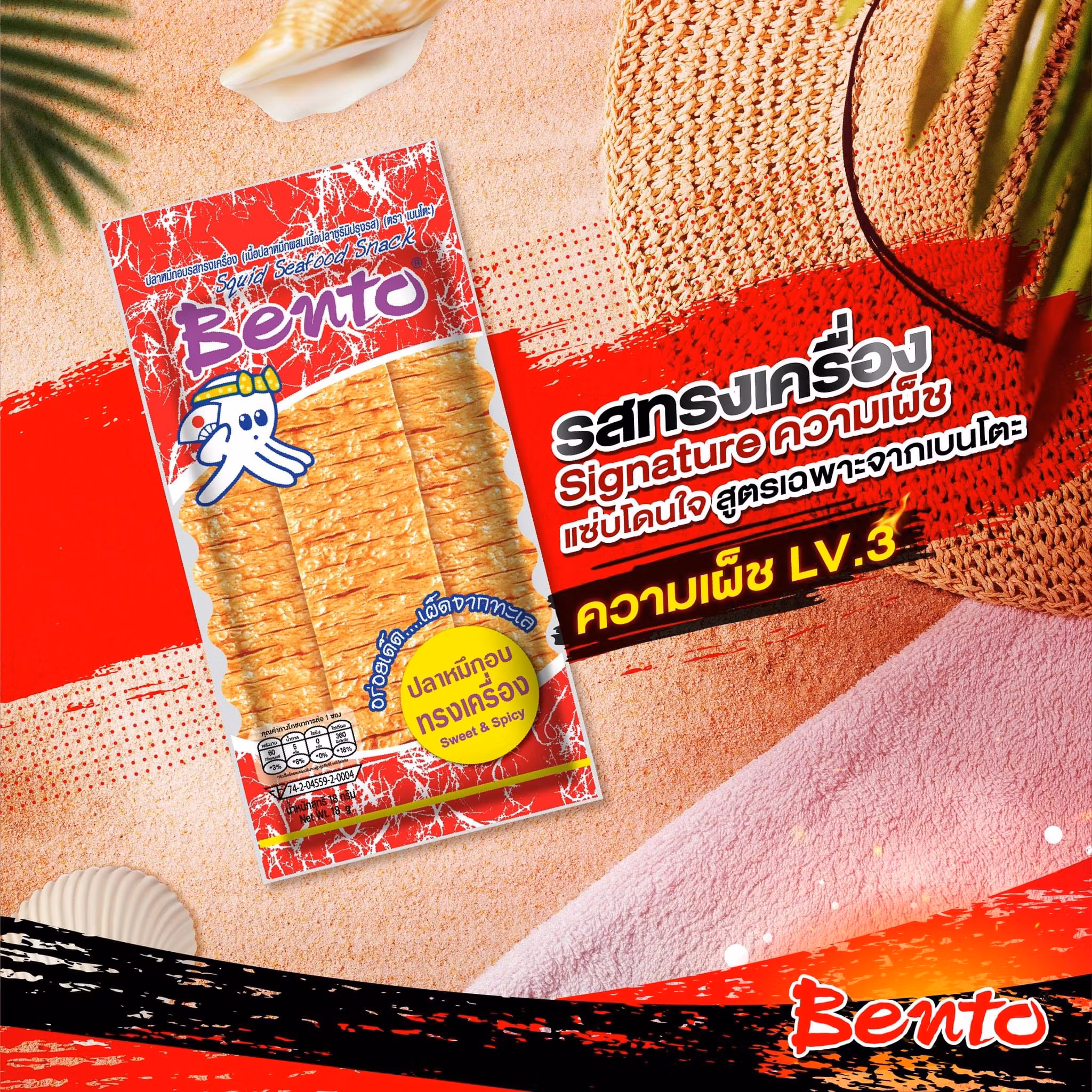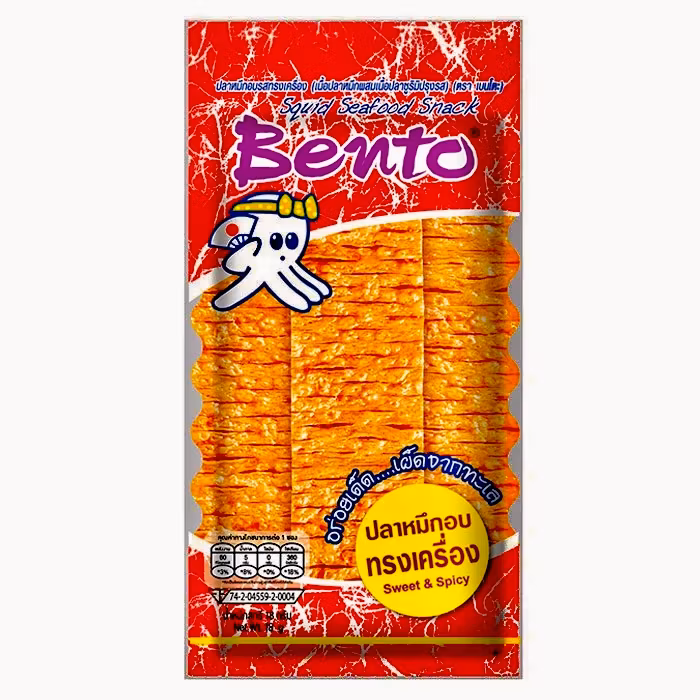 Ingredienser: SEPIA BLÄCKFISK, SURIMI (BRAXEN ( Abramis Brama)), socker, VETEMJÖL, tapiockastärkelse, örter & kryddor, socker, salt, smakförstärkelse (mononatriumglutamat, dinatrium 5'-inosinat, dinaturimguanylat),sötningsmedel (sukralos, aspartam, acesulfam k), artificiell smak.