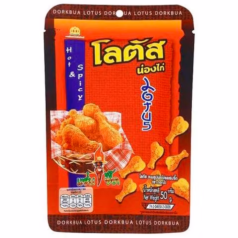 Ingredienser: Vetemjöl 62.8%, palmolja (ohärdad), potatis 7%, potatisstärkelse 7%, socker, kryddor (citrongräs, socker, salt, chili, surhetsreglerande medel (E330)), jodsalt, sjögräs, jäsningsmedel (E170, E450, E500(ii), E503(ii)), smakförstärkare (E621), färgämne (E102, E110)*. *Kan ha en negativ effekt på barns beteende och koncentration.