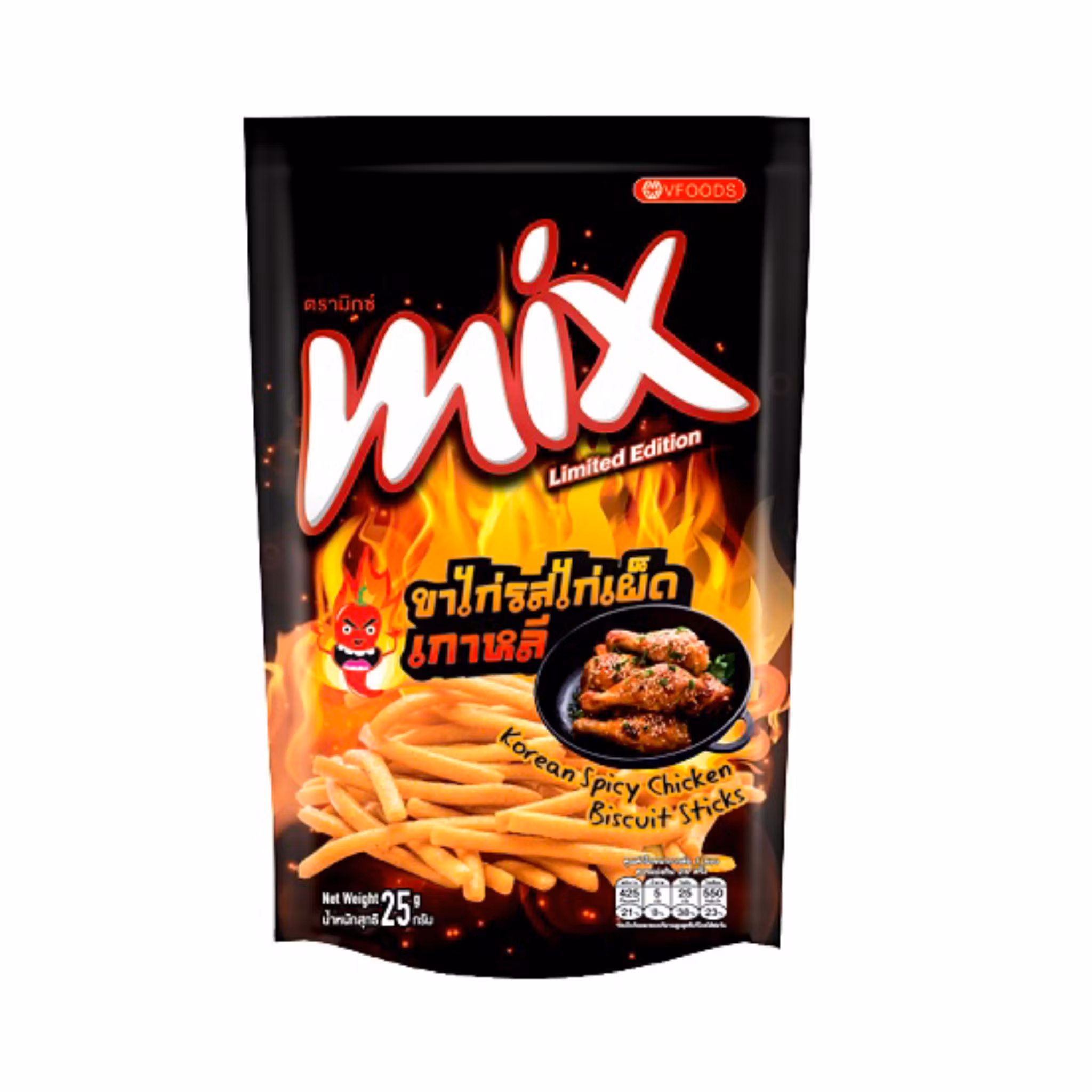 Ingredienser: Vetemjöl, socker, palmolja (ohärdad), potatisstärkelse 6%, potatis 6%, chilisås, jodsalt, chili, jäsningsmedel (E170, E450, E500(ii)), färgämne (E102, E110)*, smakförstärkare (E621) *Kan ha en negativ effekt på barns beteende och koncentration.