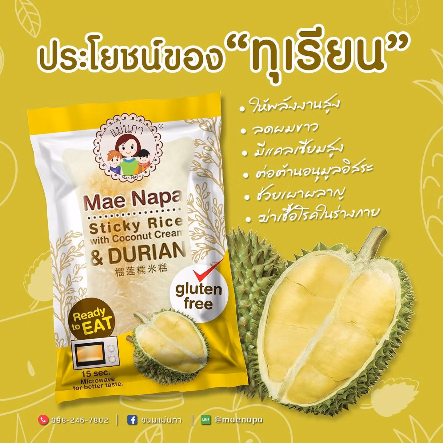 Mae Napa - Sticky Rice Cake Durian 80g x 6 (ข้าวต้มมัดยกกล่อง)