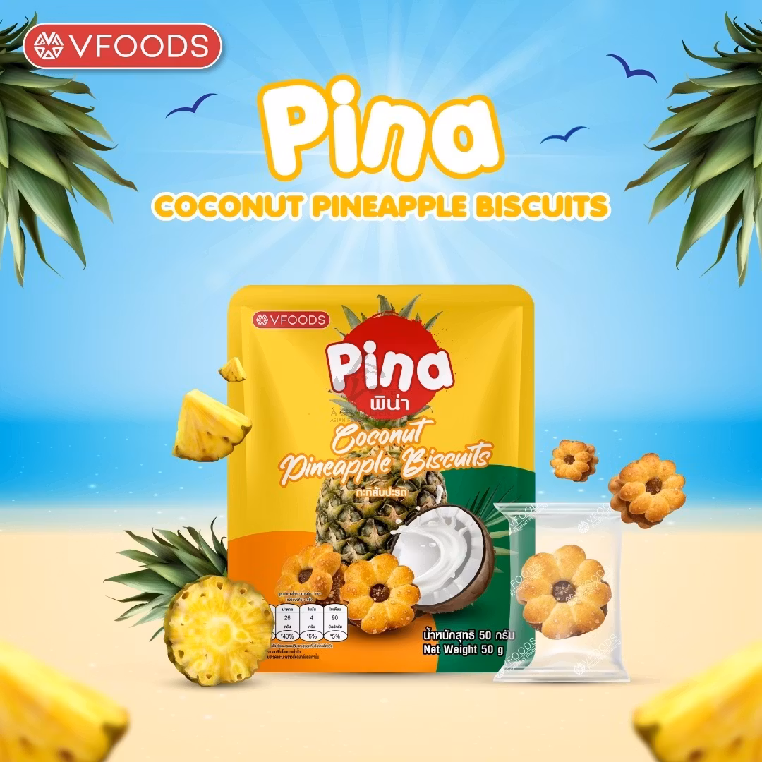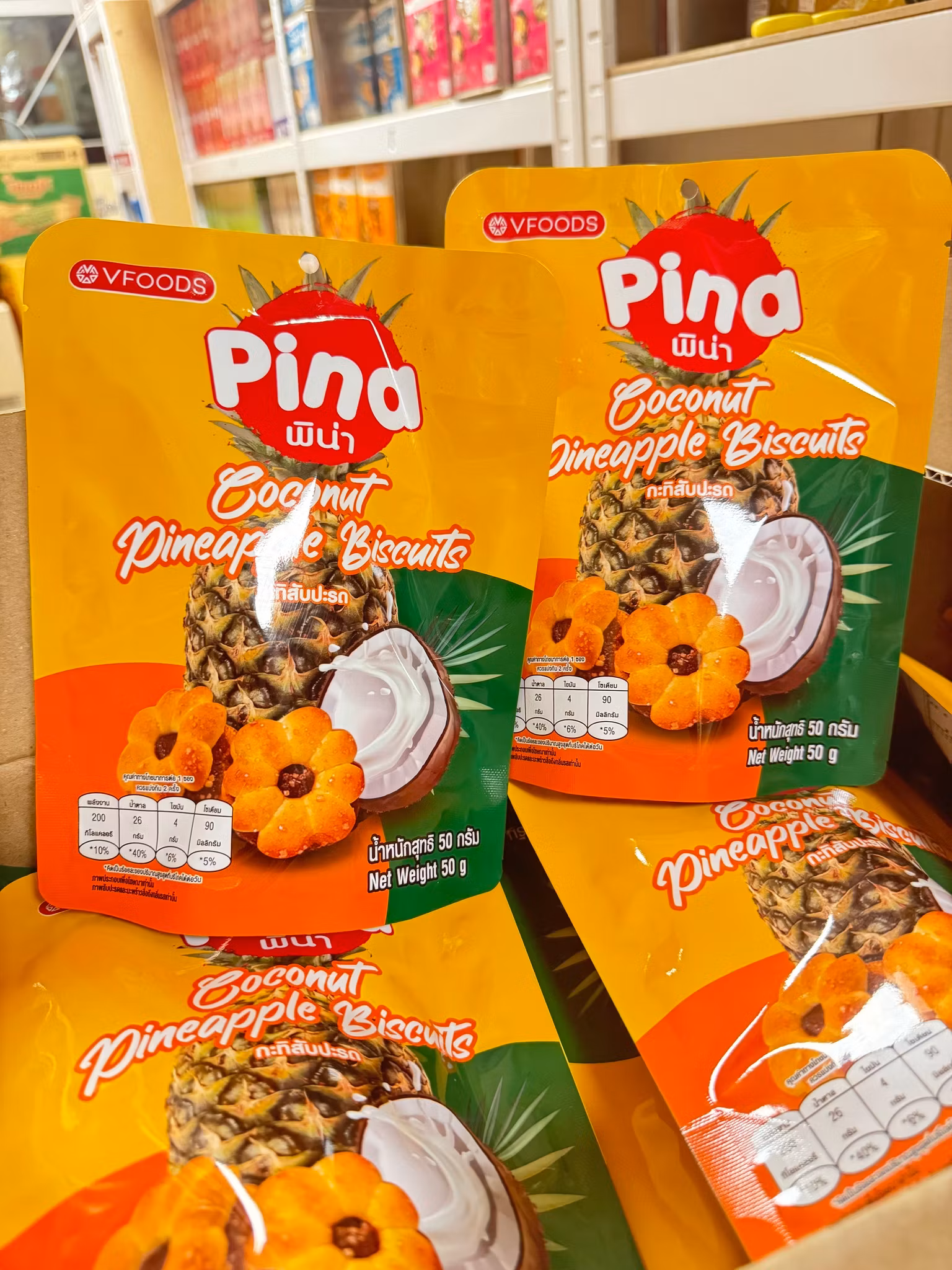 Ingredienser: VETEMJÖL, ananassylt (vatten, ananas, socker), palmolja, socker, jodsalt, arom, färgämne (E102, E110).