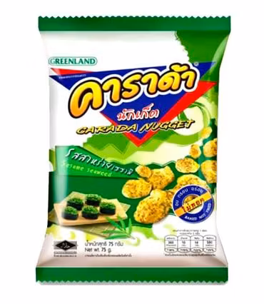 Ingredienser: Majs, ris, sjögräs, vegetabiliska olja ( SOJAolja ), SESAM, kryddor ( sjögräs, SESAM), jodsalt, smakförstärkare E621 E635.