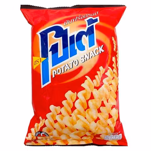 Ingredienser: Pototismjöl 76%. palmolja(ohhärdad), kryddor, jord salt, emugeringsmedel (E1412, E471), smakförstärkare (e621, e635), AROM.