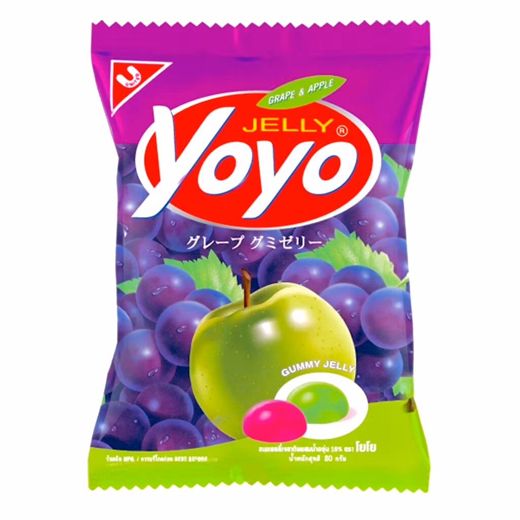 Ingredienser: Socker 33.50%, glukossirap 24%, grapefruktjuice 5%, äpplejuice 5% geleringsmedel (gelatin), surhetsreglerande medel E330, färgämnen E102 och E122: ”Kan ha negativ effekt på barns beteende och koncentration.”, färgämne E133, aromer.